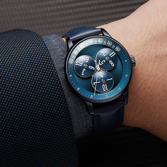 This journey began with my fascination for the essence of time and everyday mechanics—subway flip clocks, swinging pendulums, and factory machines. Inspired by these, I imagined telling time not with hands, but through shifting colors and moving structures. Over time, sketches of rotating discs and sliding blocks shaped a new, unconventional way to display time. After years in the watch industry, gaining hands-on experience in design and engineering, I brought the idea to life in 2023. That night, the first digital model of Secret Orbital was born—featuring a sleek case, curved sapphire crystal, Miyota 9015 automatic movement, and glowing Super-LumiNova markers. Every detail reflects my passion for reimagining time.