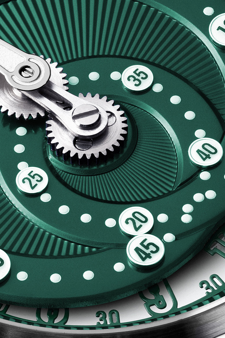 Inspired by a 17th-century complication, the Wandering Hour reimagines how we read time—not with static hands, but with hours that glide across the dial in a graceful arc.