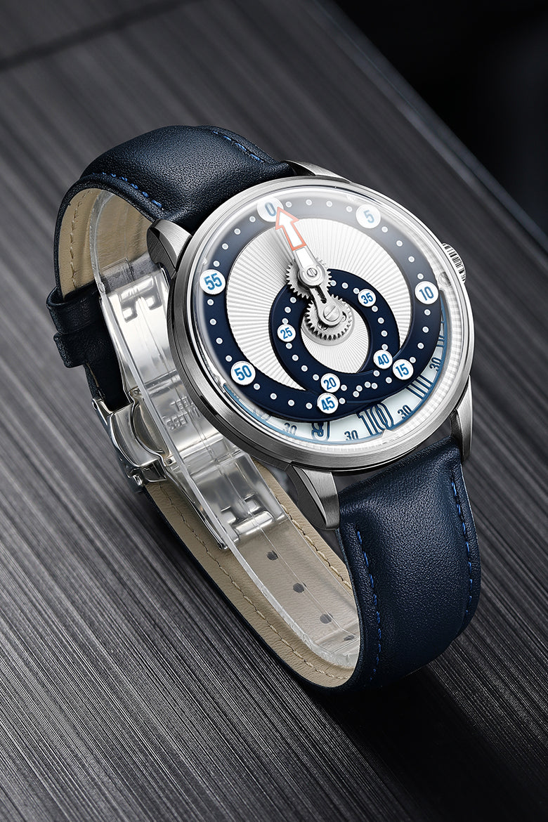 This journey began with my fascination for the essence of time and everyday mechanics—subway flip clocks, swinging pendulums, and factory machines. Inspired by these, I imagined telling time not with hands, but through shifting colors and moving structures. Over time, sketches of rotating discs and sliding blocks shaped a new, unconventional way to display time. After years in the watch industry, gaining hands-on experience in design and engineering, I brought the idea to life in 2023. That night, the first digital model of Secret Orbital was born—featuring a sleek case, curved sapphire crystal, Miyota 9015 automatic movement, and glowing Super-LumiNova markers. Every detail reflects my passion for reimagining time.