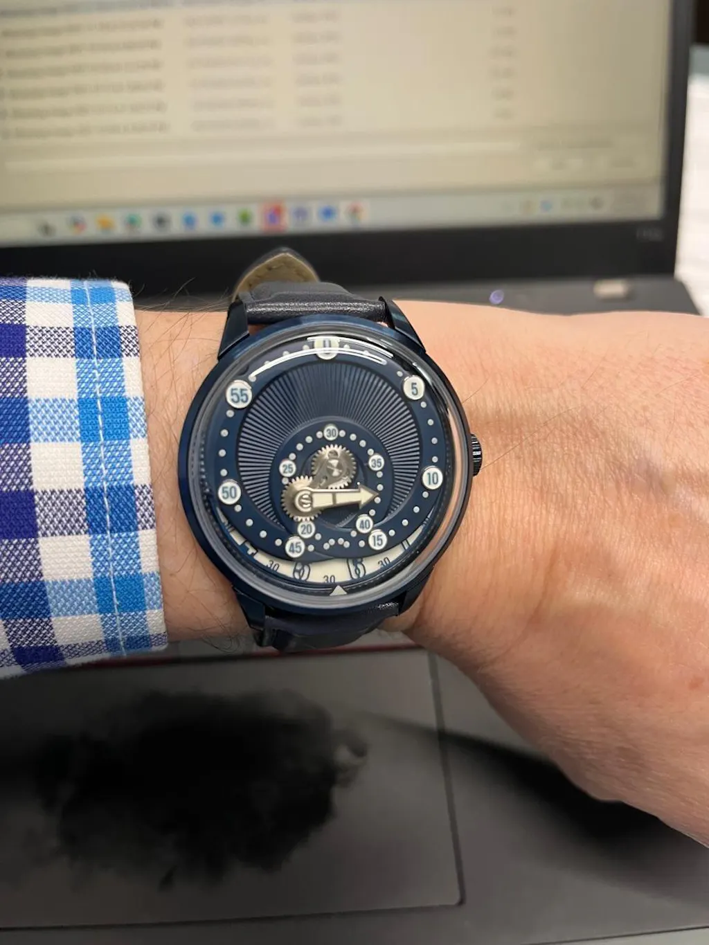Muy bonito reloj, original con mecanismo automático. El único punto en contra es la reserva de marcha, ya que si lo dejas de usar unas horas se detiene. Saludos